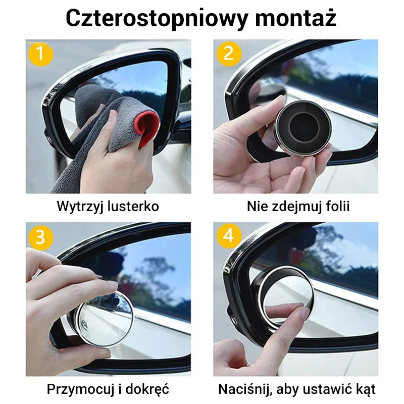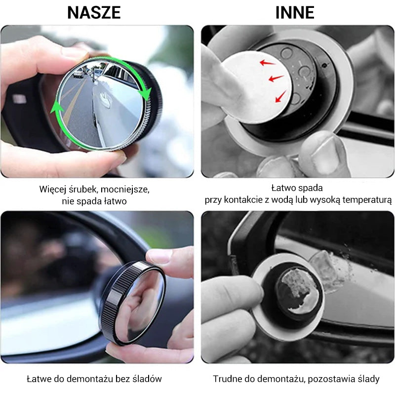 - Skuteczna ochrona: lusterko do martwego pola ma ramę z tworzywa ABS, która skutecznie chroni powierzchnię lustra o wysokiej rozdzielczości. Szeroki kąt widzenia zapewnia dodatkowe bezpieczeństwo dla Ciebie i Twojej rodziny.