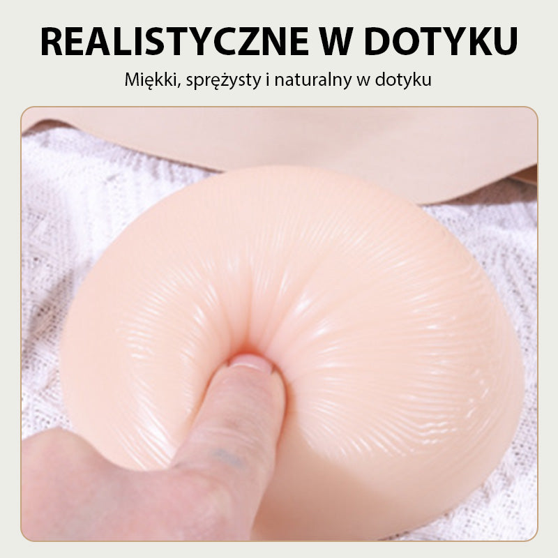 REALISTYCZNY WYGLĄD I DOTYK – Zaprojektowane z zaokrąglonym kształtem, miękką teksturą i realistycznym odbiciem podczas ruchu. Niezależnie od tego, czy chodzisz, czy biegasz, realistyczny wygląd i dotyk sprawiają, że praktycznie nie można ich odróżnić od prawdziwych piersi.