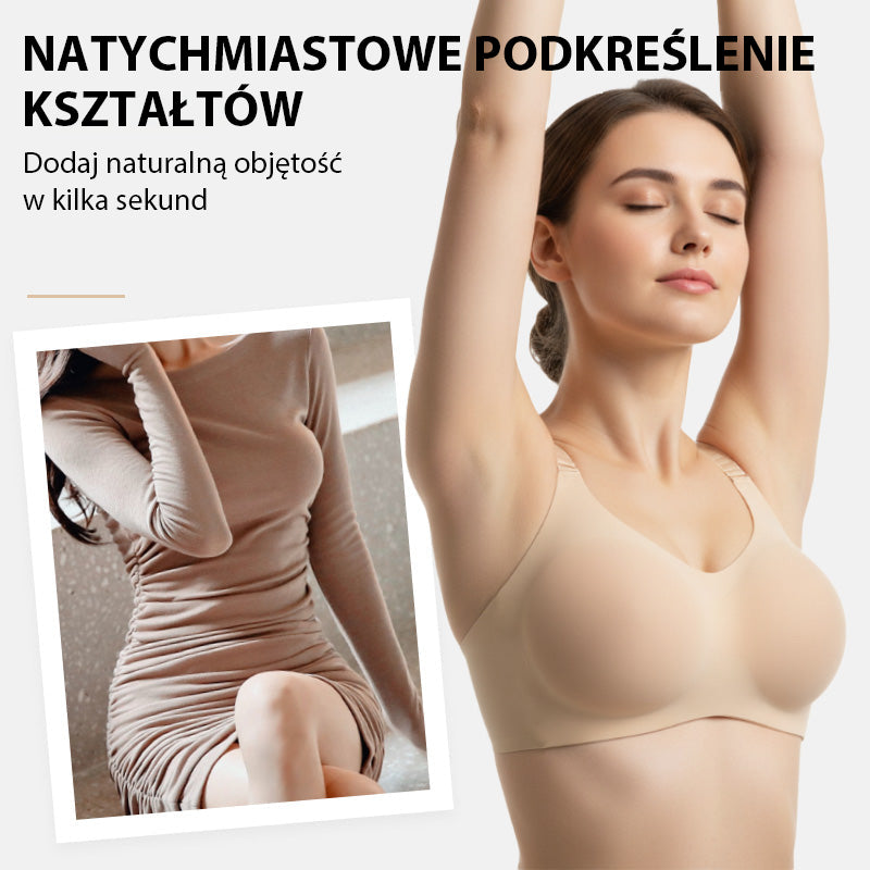 NATYCHMIASTOWE POWIĘKSZENIE BIUSTU – Natychmiast dodaj objętość i krągłości dzięki wbudowanym silikonowym wkładkom, które w naturalny sposób powiększają rozmiar miseczki. Z łatwością uzyskaj gładki, pełny biust i atrakcyjną sylwetkę klepsydry.