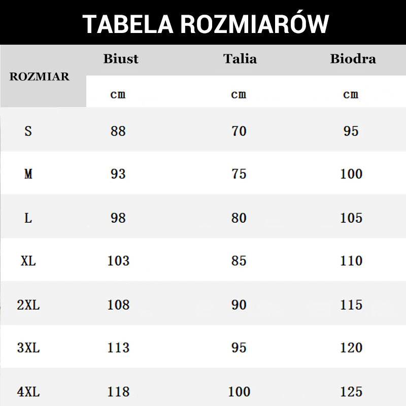 Przed złożeniem zamówienia sprawdź tabelę rozmiarów, aby zapewnić najlepsze dopasowanie.