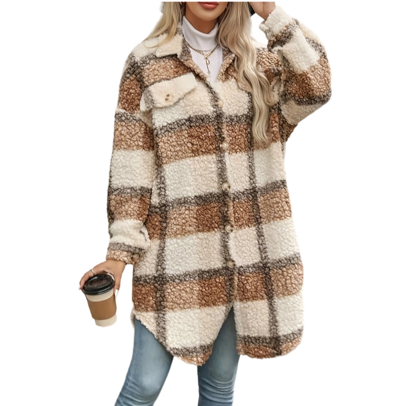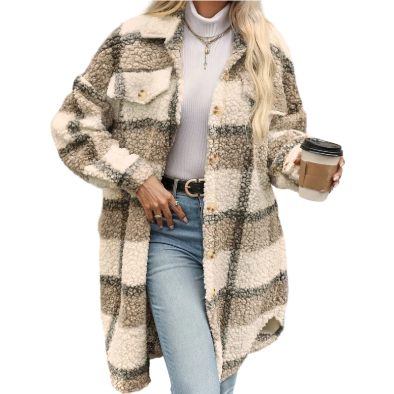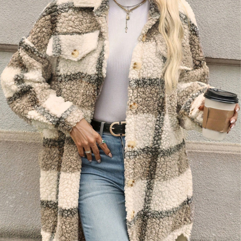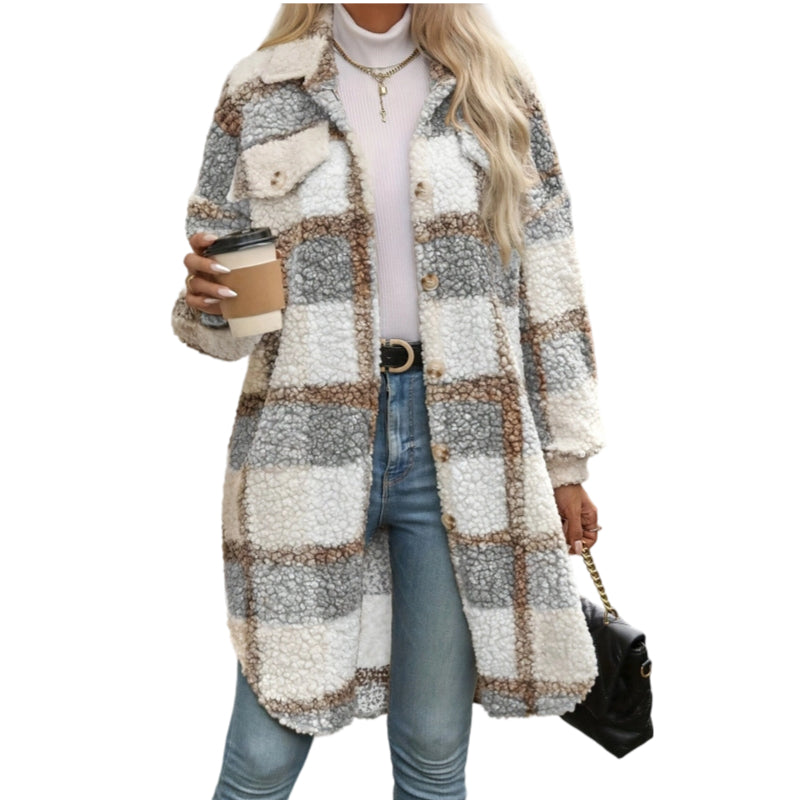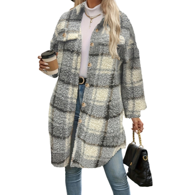 Zestaw zawiera: 1* damski płaszcz w kratę o średniej długości
